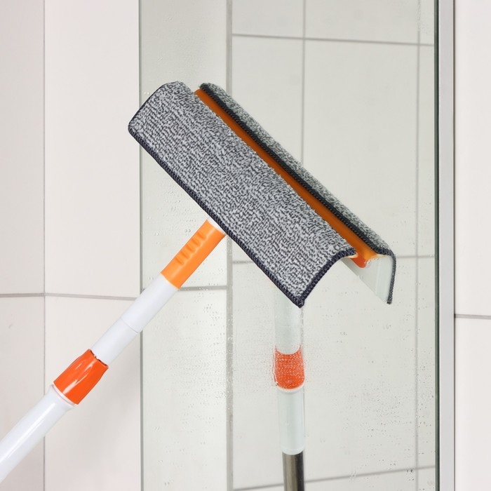 Окномойка с насадкой из микрофибры Доляна, фиксатор, стальная телескопическая ручка, 27×8×86(126) см, цвет МИКС