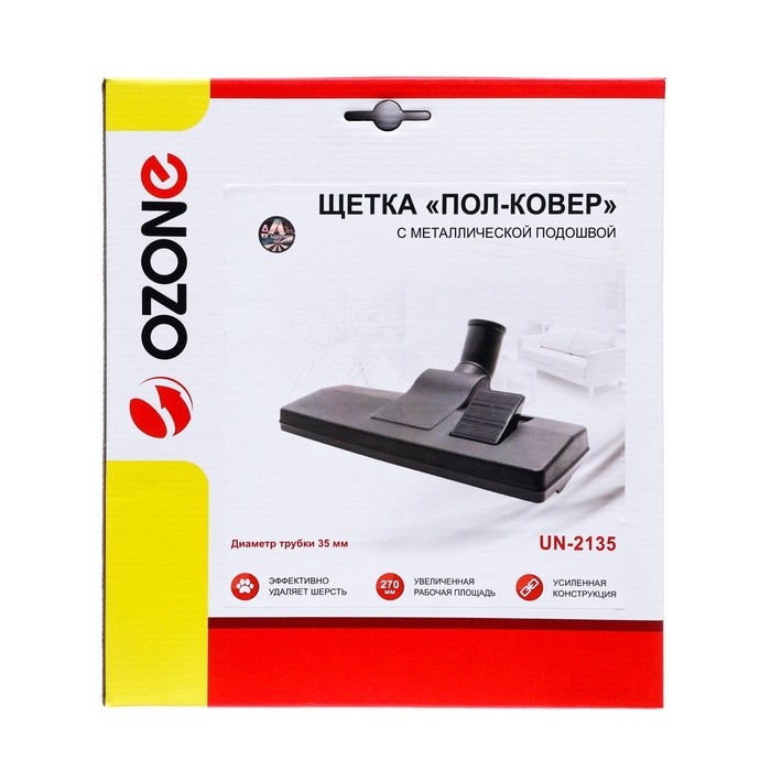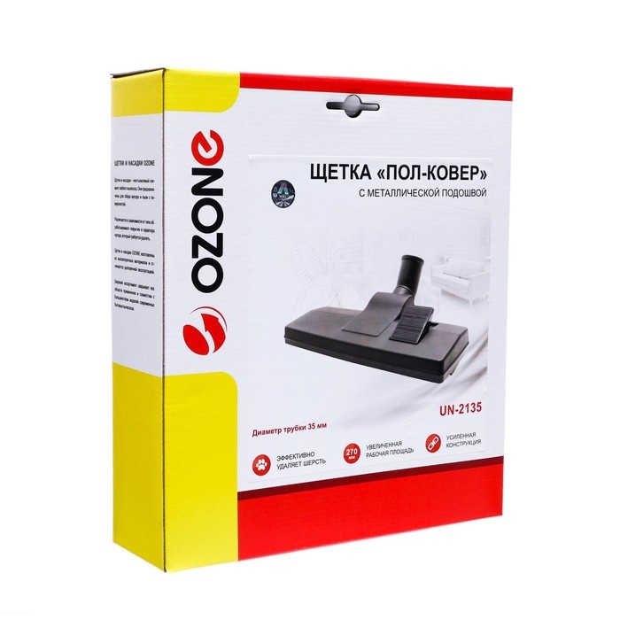 Щетка для пылесоса "Пол-ковер" UN-2135 Ozone с металлической подошвой 270х95 мм - это надежное и эффективное решение для уборки различных типов покрытий. Она идеально подходит для чистки ковров, паркета, линолеума и других твердых поверхностей. Щетка оснащена специальными щетинками, которые эффективно удаляют пыль, волосы и другие загрязнения, обеспечивая глубокую и тщательную очистку.