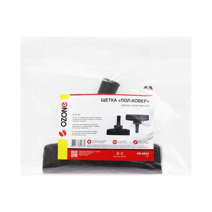 Щетка для пылесоса "Пол-ковер" UN-6935 Ozone - это насадка, предназначенная для уборки всех типов покрытий. Она подходит для чистки как твердых полов, так и ковровых покрытий.