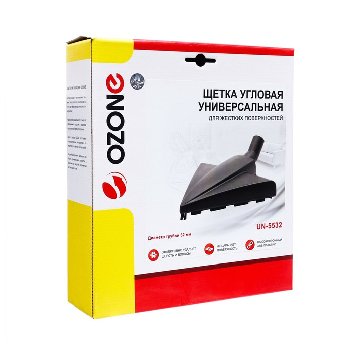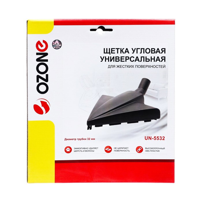 Щетка для пылесоса угловая Ozone для жестких поверхностей - это универсальный аксессуар, который позволяет эффективно очищать различные твердые поверхности, такие как плитка, ламинат, линолеум и другие. Она имеет специальную угловую форму, которая обеспечивает легкую уборку в труднодоступных местах, таких как углы и вдоль плинтусов.