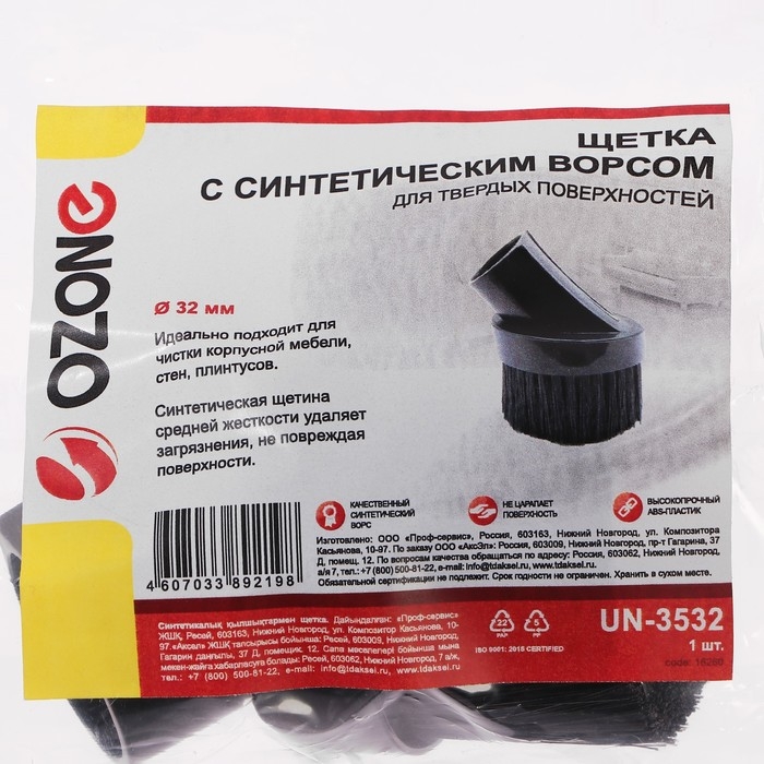 Щетка для пылесоса UN-3532 Ozone - это специальная насадка, предназначенная для уборки различных типов поверхностей. Она подходит для чистки как твердых полов, так и ковровых покрытий.