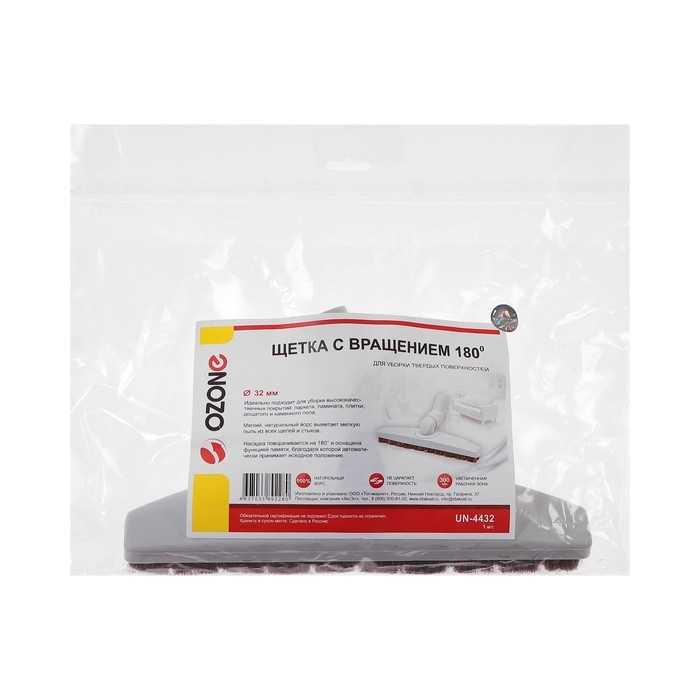Щетка для пылесоса UN-4432 Ozone - это специальная насадка, предназначенная для уборки твердых поверхностей. Она подходит для чистки таких покрытий, как плитка, ламинат, линолеум и другие.
