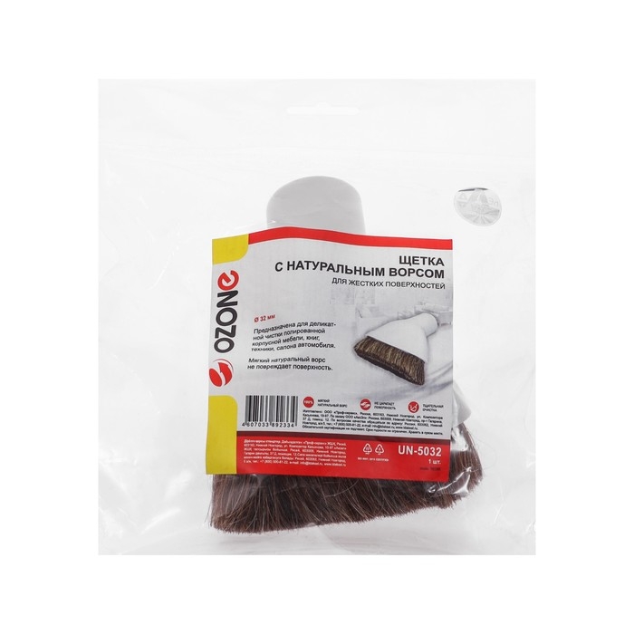 Щетка для пылесоса UN-5032 Ozone - это универсальный инструмент для уборки различных типов поверхностей. Она оснащена коротким натуральным ворсом, который обеспечивает тщательную уборку, не повреждая поверхность.