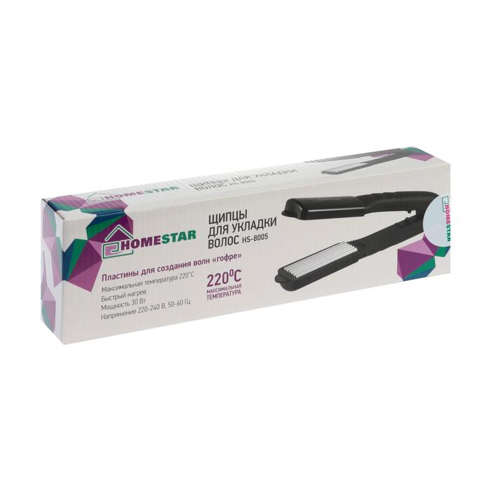 Щипцы-гофре HOMESTAR HS-8005, 30 Вт, алюминиевое покрытие, 33х80 мм, 220°С, черные