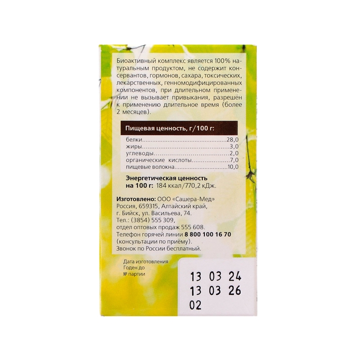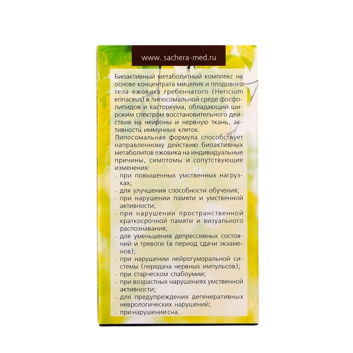 Состав: концентрат мицелия и плодового тела ежовика гребенчатого (Hericium erinaceus), лецитин, холин, кастореум, олигофруктоза.