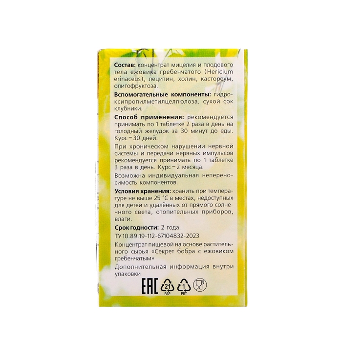 Секрет бобра с ежовиком, 30 таблеток