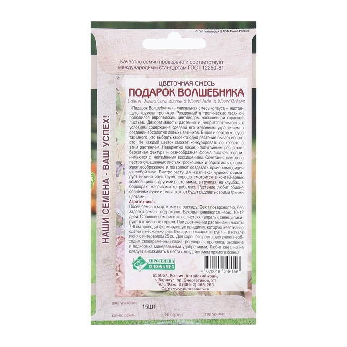 Семена Цветов Цветочная смесь Подарок Волшебника, 15 шт