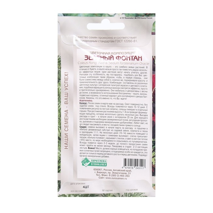 Семена Цветов Цветочная композиция Зеленый Фонтан, 4 шт