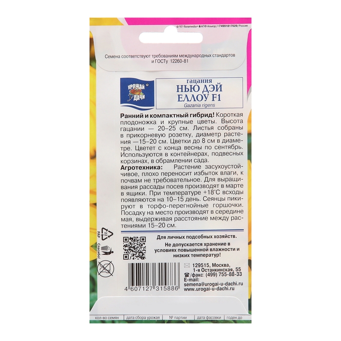 Семена цветов Гацания "Нью Дэй Еллоу", F1, 0,01 г
