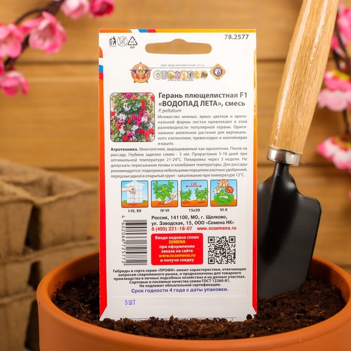 Семена цветов Герань, "Водопад лета", плющелистная, смесь, 5 шт.