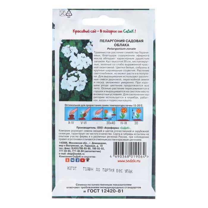 Семена цветов Пеларгония "Дансер Вайт", зональная, Сем. Алт, ц/п, 4 шт