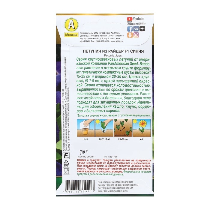 Семена Цветов Петуния "Из райдер", F1, синяя, 7 шт