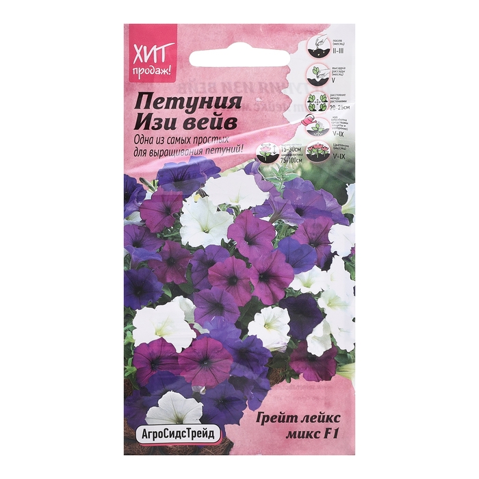 Знаменитый ампельный гибрид многоцветковой петунии, удивляющий своим обильным цветением от американской компании PanAmerican Seed. Характеризуется длительным периодом цветения и устойчивостью к неблагоприятным условиям. Дословно название серии переводится, как «легкая волна», это действительно так же красиво - целью селекции было создание легкого в уходе и хорошо растущего в условиях короткого светового дня растения. Ниспадающие плети покрыты множеством удивительных миниатюрных цветов. Данная серия наращивает массу растения сначала "куполом", достигая 25-38 см в ширину и диаметром 15-30 см, формируя в последствии плети до 1 метра, обильно усыпанные крупными цветками. Цветение обильное, длится с июня по октябрь. Этот уникальный гибрид позволяет создать изысканные и неповторимые композиции при оформлении клумб, рабаток, вазонов и кашпо. Также петунию данной серии смело можно сажать в балконные ящики. Агротехника: Семена покрыты оболочкой! Петуния – мелкосемянная культура, требовательная к условиям выращивания. Посев на рассаду в феврале-марте. Гранулы располагают на поверхности субстрата, не засыпая их почвой, а лишь слегка прижимают и накрывают стеклом или пленкой. Для прорастания семян необходимо хорошее освещение и температура 20-24˚С. Полив производят из опрыскивателя. Всходы появляются на 10-15 день. После появления первого настоящего листа всходы проветривают, периодически снимая стекло и убирая конденсат влаги. Температуру постепенно снижают до 14-16˚С и следят, чтобы не было переувлажнения субстрата. Закаленную рассаду высаживают в грунт по схеме 25×30 см. В дальнейшем уход заключается в рыхлении, поливе и подкормах. Штрих-код –