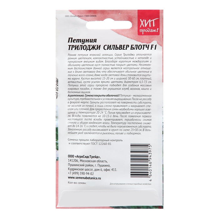 Петуния "Трилоджи Сильвер Блотч" — это уникальное растение с эффектными цветами, которые имеют серебристый оттенок с темными пятнами. Эта петуния станет ярким акцентом в вашем саду или на балконе благодаря своей оригинальной окраске и обильному цветению.