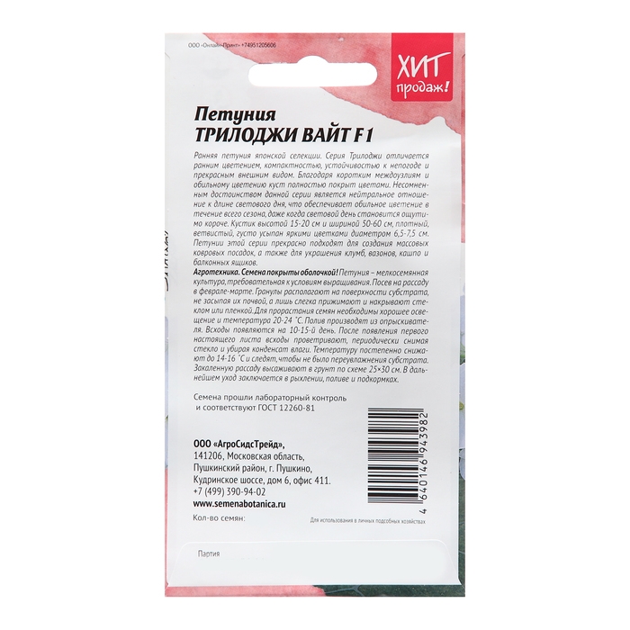 СерияМиражкомпании PanAmerican Seed зарекомендовала себя устойчивостью ко всем капризам природы, стойко выдерживает любую непогоду. Куст компактный, высотой 25-38см и шириной 25-36см, густо унизанный яркими крупными цветками диаметром 6-7 см. Данная серия будет радовать ярким цветением необычных цветов с середины мая до октября. Сорт устойчив к понижению температуры, он не страдает во время весенних заморозков и при осеннем похолодании. Великолепно подходит для оформления подвесных корзин и балконных ящиков. Агротехника: Семена покрыты оболочкой! Петуния – мелкосемянная культура, требовательная к условиям выращивания. Посев на рассаду в феврале-марте. Гранулы располагают на поверхности субстрата, не засыпая их почвой, а лишь слегка прижимают и накрывают стеклом или пленкой. Для прорастания семян необходимо хорошее освещение и температура 20-24˚С. Полив производят из опрыскивателя. Всходы появляются на 10-15 день. После появления первого настоящего листа всходы проветривают, периодически снимая стекло и убирая конденсат влаги. Температуру постепенно снижают до 14-16˚С и следят, чтобы не было переувлажнения субстрата. Закаленную рассаду высаживают в грунт по схеме 30×30 см. В дальнейшем уход заключается в рыхлении, поливе и подкормах.