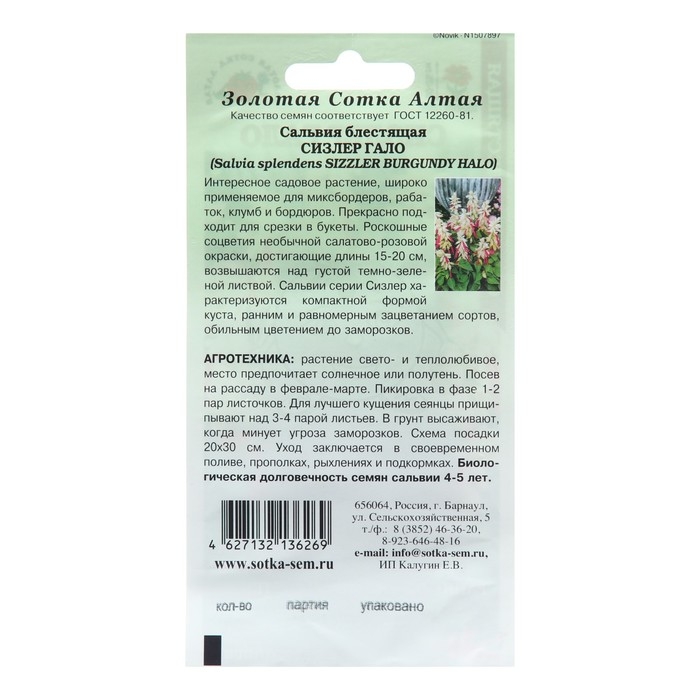 Семена цветов Сальвия "Сизлер Гало", 10 шт