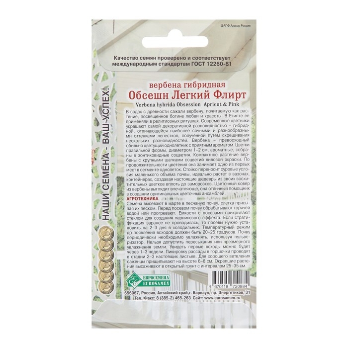Семена цветов Вербена гибридная "Обсешн Легкий Флирт", 8 шт