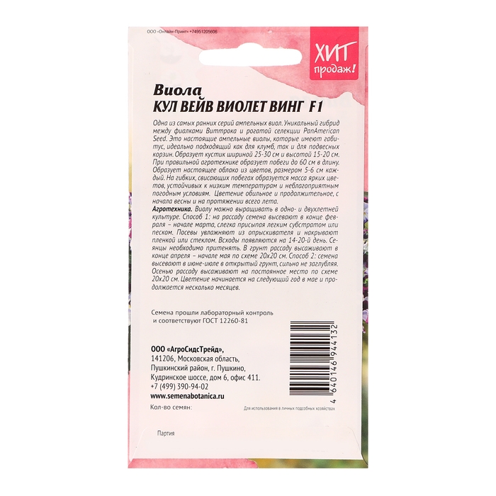 Семена цветов Виола "Кул Вейв Виолет Винг F1", 5 шт