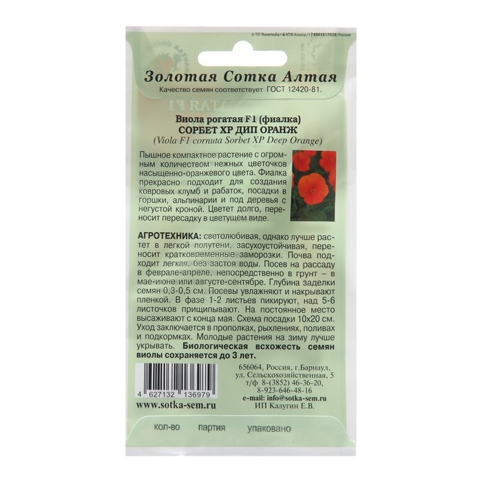 Семена цветов Виола Сорбет "Дип Оранж", 5 шт
