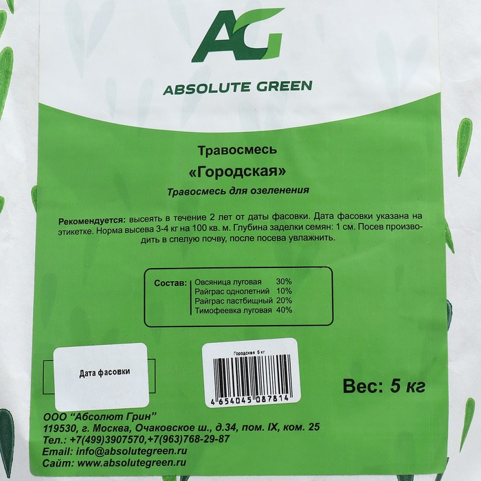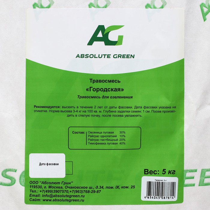 Семена Газонная травосмесь "Евро-семена", "Городская", 5 кг