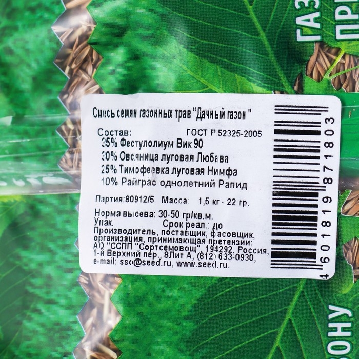 Семена газонной травы "Зеленый уголок","Дачный", 1,5 кг