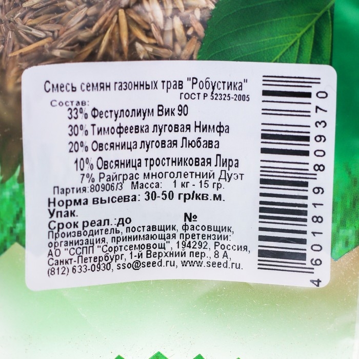 Семена газонной травы "Зеленый уголок","Робустика", 1 кг