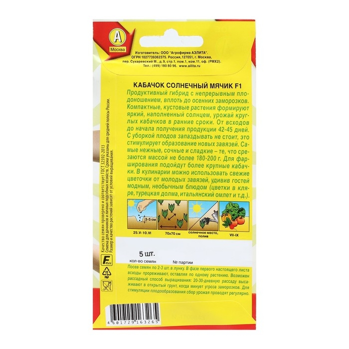 Семена Кабачок "Солнечный мячик", F1, 5 шт