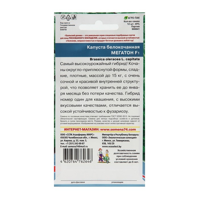 Семена капусты белокочанной "Мегатон", F1 - это высококачественный гибрид капусты, который отличается высокой урожайностью, устойчивостью к болезням и прекрасным вкусом. Каждый пакет содержит 10-12 штук семян, которые гарантированно приведут к выращиванию здоровых и сильных растений.Этот сорт капусты идеально подходит для выращивания как в теплицах, так и на открытом грунте. "Мегатон" F1 является одним из самых популярных сортов капусты среди огородников и садоводов благодаря своей урожайности и отличному вкусу.Капуста "Мегатон" F1 имеет плотную и сочную головку, которая отличается отличным вкусом и ароматом. Этот сорт капусты обладает высокой устойчивостью к болезням, что позволяет получать стабильный урожай даже при неблагоприятных условиях.