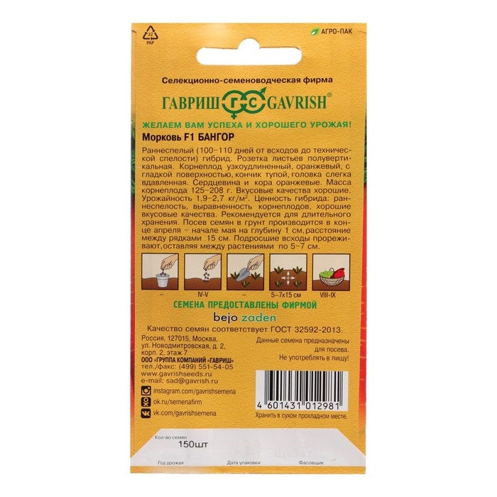 Семена Морковь "Бангор", F1, 150 шт.