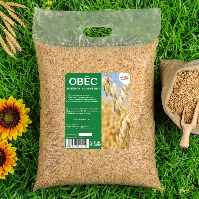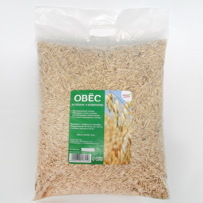 Возделывают овёс на зелёный корм, как в чистом виде, так и в смеси с бобовыми культурами, чаще с викой, горохом. Овёс— она из важнейших зернофуражных культур. В его зерне содержатся: белок — в среднем 10,1 %, крахмал — 36,1 %, жир — 4,7 %, зола — 3,2 %сахар — 2,35 %, витамины В1, В2. Зерно овса в цельном виде является незаменимым кормом для лошадей, крупного рогатого скота, особенно молодняка, и домашней птицы. Оно отличается высокой питательностью. Овсяные крупы и мука имеют большое количество, жиров и витаминов группы В.