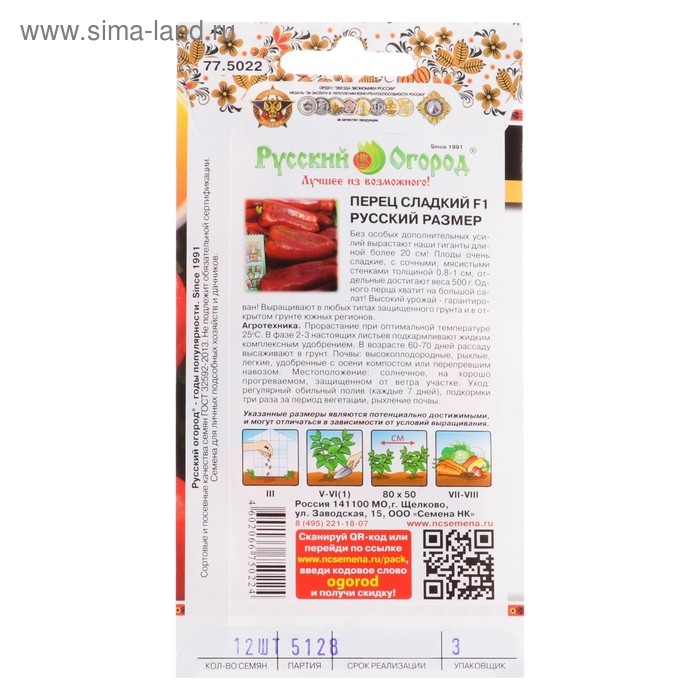 Семена Перец сладкий "XXL" F1, серия Русский размер, 12 шт