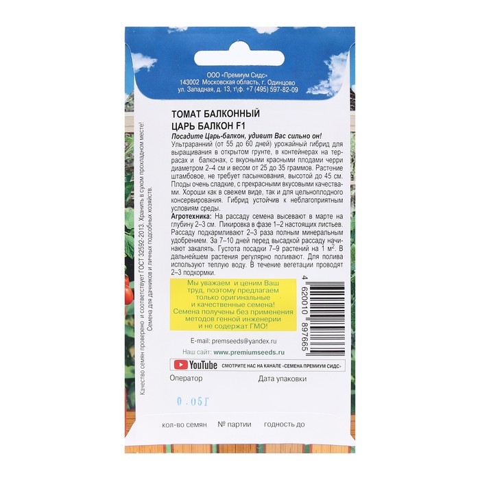 Семена Томат "Царь Балкон F1", 0,05 г.
