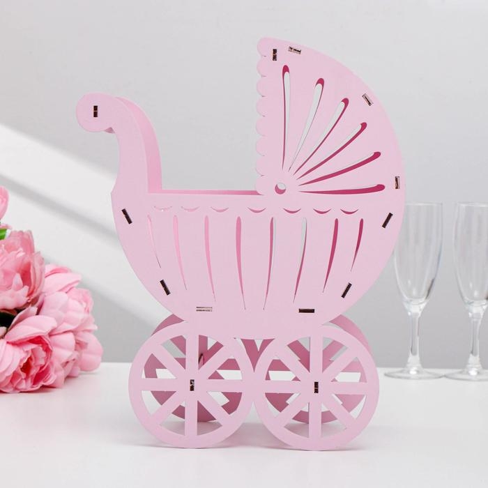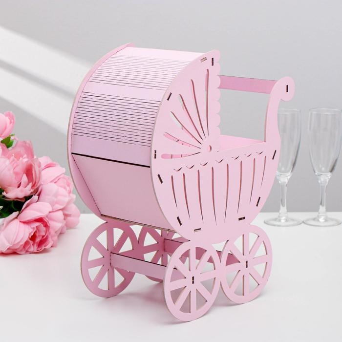 Семейный банк "Коляска", фанера, розовый, 27х15х33,5 см
