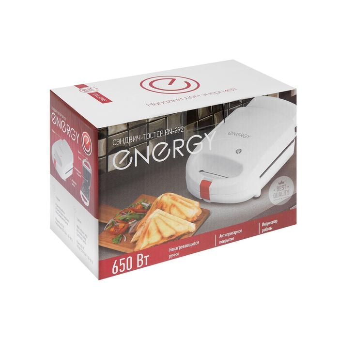 Сэндвич-тостер ENERGY EN-272, 650 Вт, антипригарное покрытие, белый