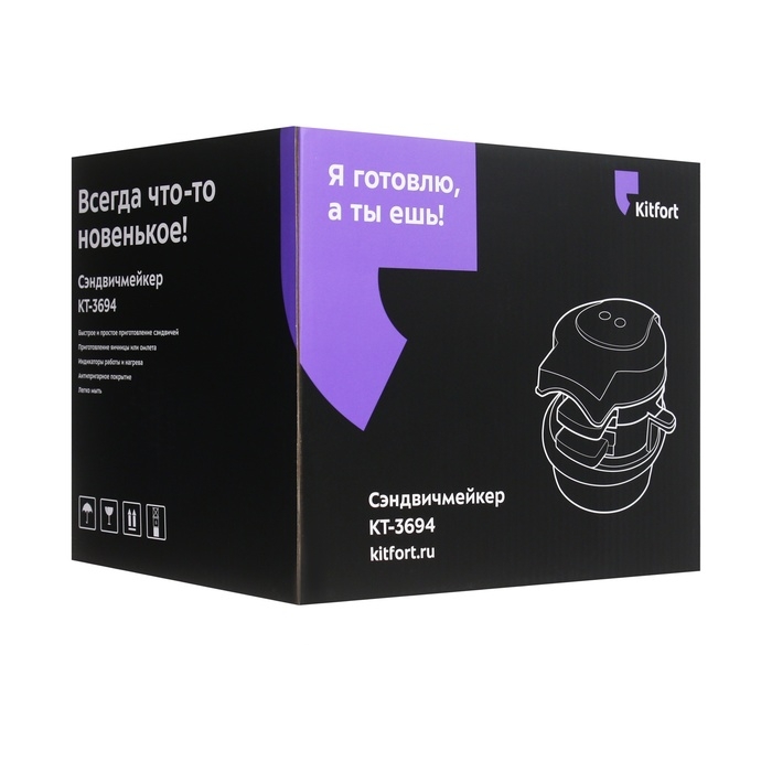 Сэндвичмейкер Kitfort КТ-3694, 700 Вт, d=10.5 см, шнур 1 м, чёрный