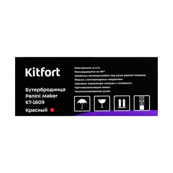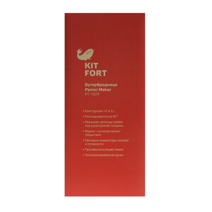 Сэндвичница Kitfort КТ-1609 Panini Maker, 640 Вт, антипригарное покрытие, красный/чёрный