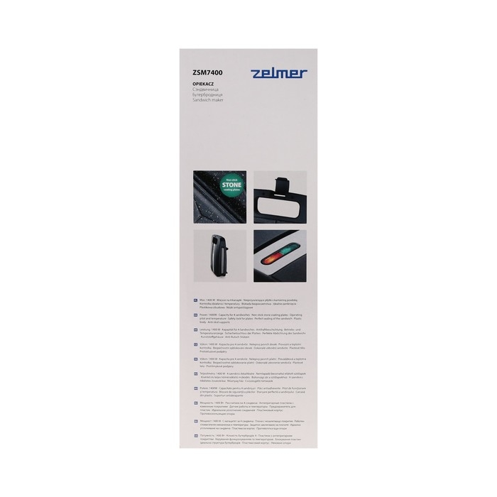 Сэндвичница Zelmer ZSM7400, 1400 Вт, антипригарное покрытие, чёрная
