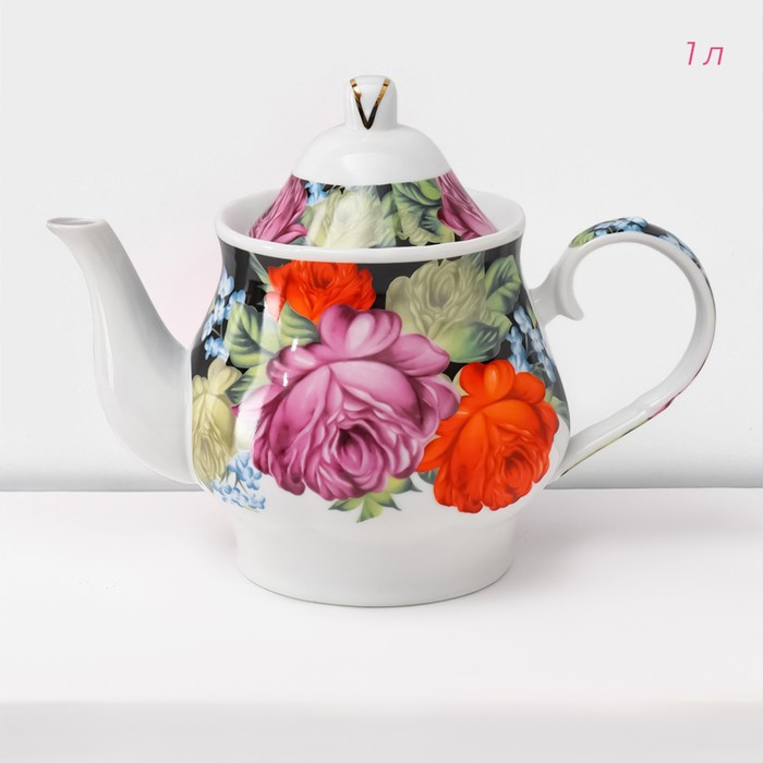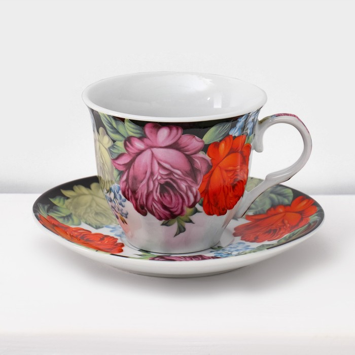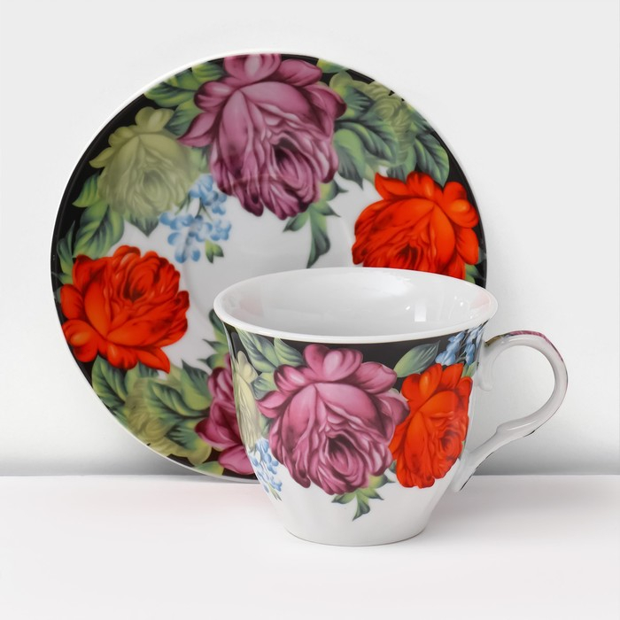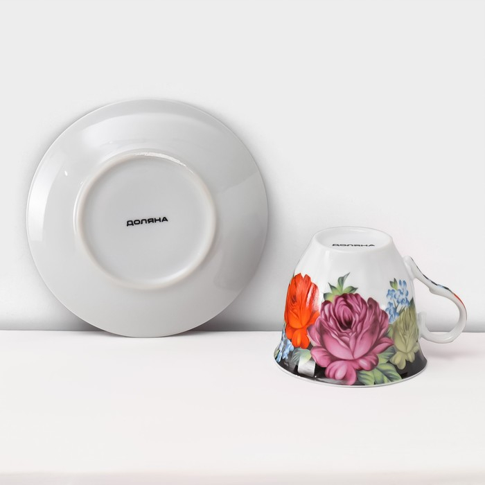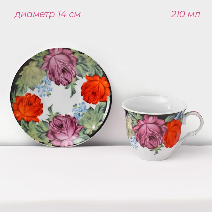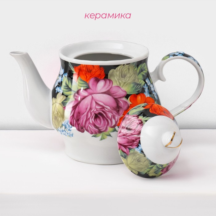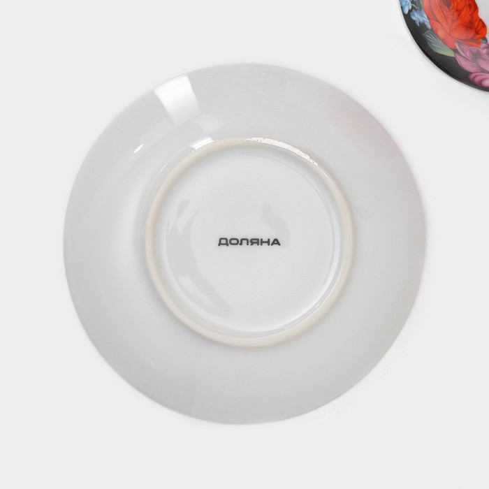 Сервиз чайный керамический на металлической подставке Доляна «Роспись», 13 предметов: 6 чашек 210 мл, 6 блюдец d=14 см, чайник 1 л