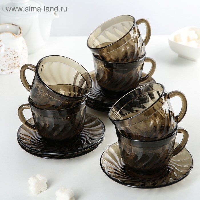 Чайный стеклянный набор «Грация», 12 предметов: кружка 250 мл, 6 шт, блюдце, 6 шт