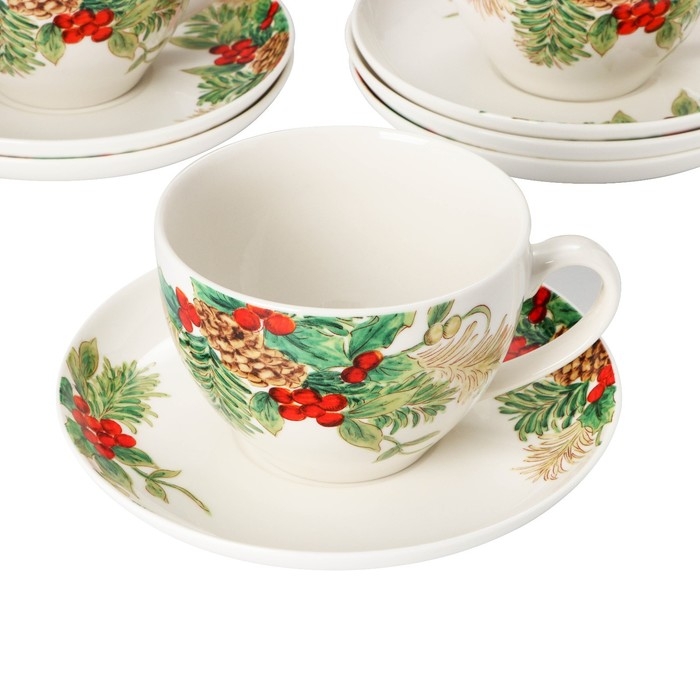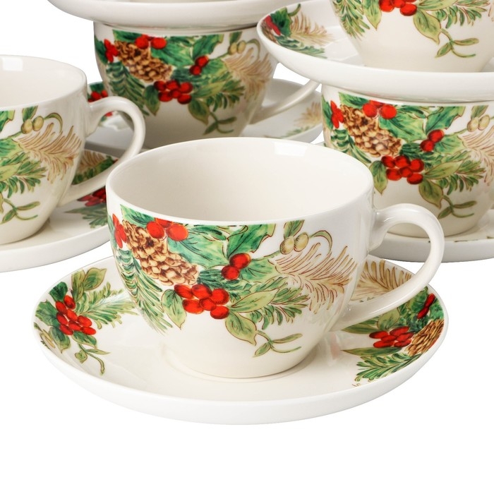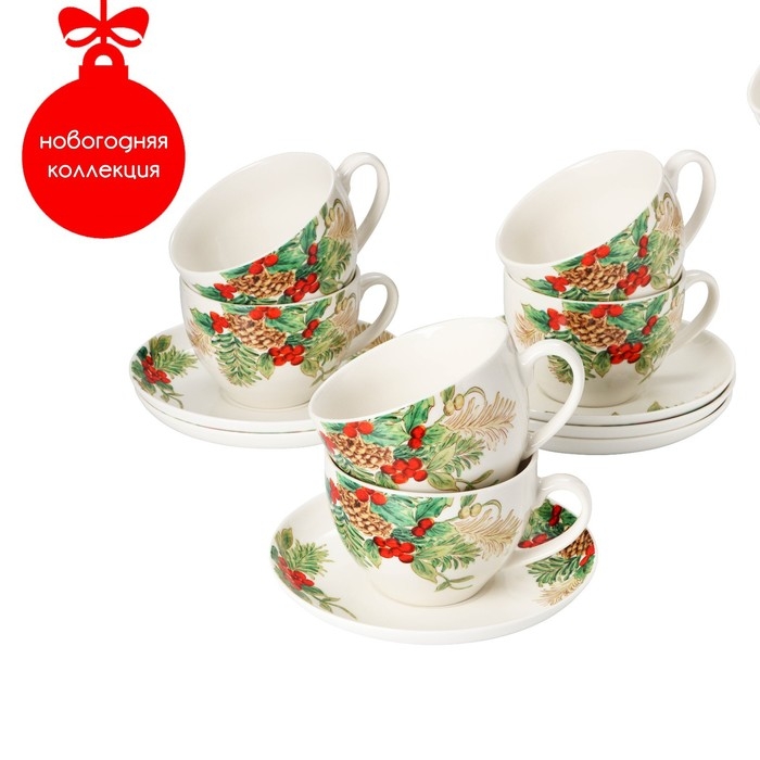 Сервиз фарфоровый чайный Доляна «Рождество»,12 предметов: 6 чашек 280 мл, 6 блюдец, d=15 см