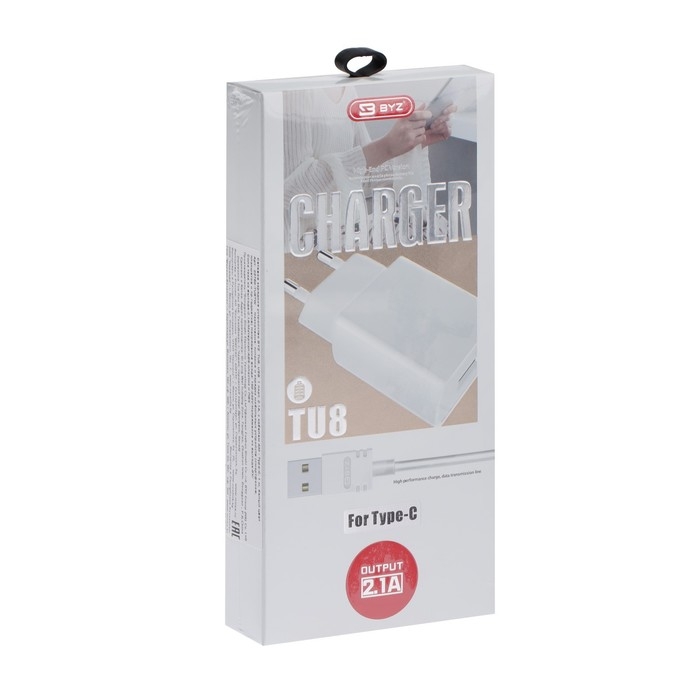 Сетевое зарядное устройство BYZ TU8, USB, 2.1 А, кабель Type-C, 1 м, белое