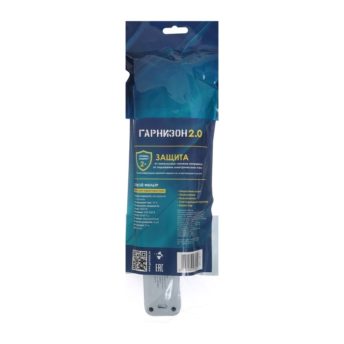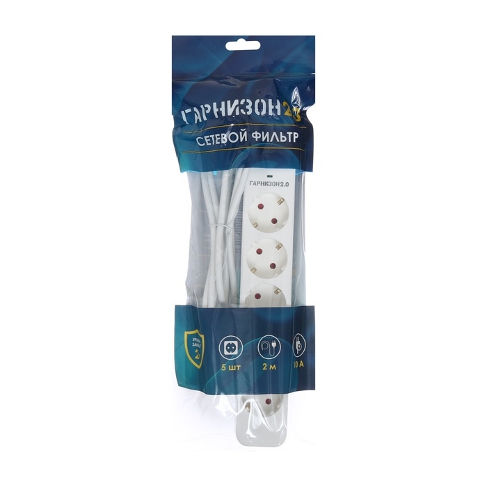 Сетевой фильтр Гарнизон 2.0 EPS-5-W-2, 5 р, 10А, 2м, ур.защиты 2+, белый