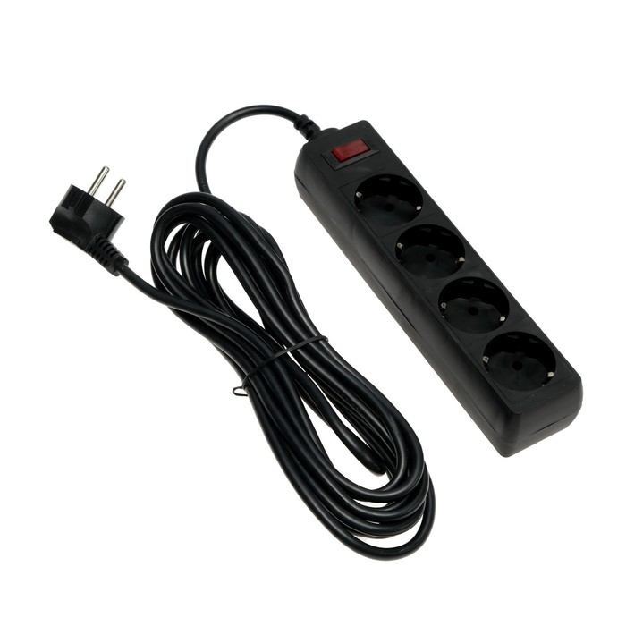 Сетевой фильтр Luazon Lighting, 4 розетки, 5 м, 2200 Вт, 3 х 0.75 мм2, 10 А, 220 В, черный