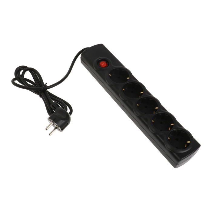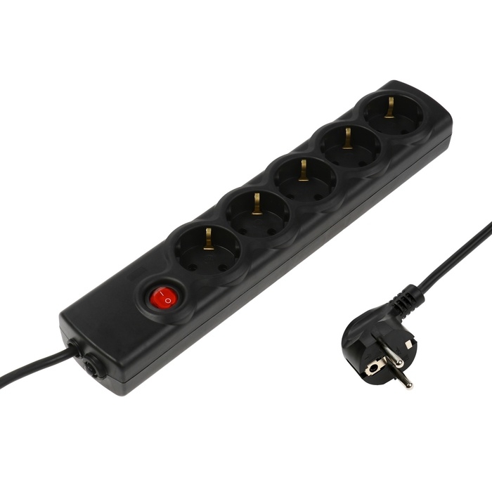 Сетевой фильтр Luazon Lighting, 5 розеток, 1,5 м, 2200 Вт, 3х0.75 мм2, 10 A, 220 В, c предохранителем, черный