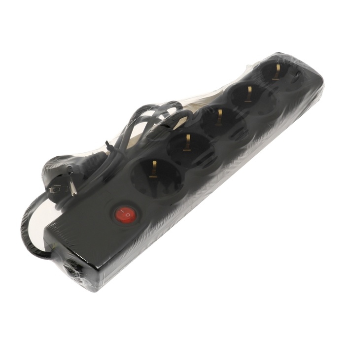 При подключении компьютерного оборудования, бытовой техники и различных электроприборов он обеспечивает защиту от короткого замыкания и перегрузки по току. Для подачи и отключения питания без необходимости извлечения штепсельной вилки предусмотрен общий выключатель со световым индикатором состояния. Сетевой фильтр выполнен в корпусе из термостойкого пластика и имеет кабель универсальной длины.