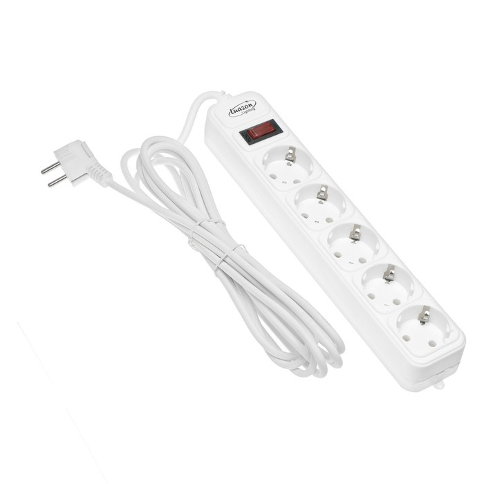 Сетевой фильтр Luazon Lighting, 5 розеток, 5 м, 2200 Вт, 3 х 0.75 мм2, 10 А, 220 В, белый