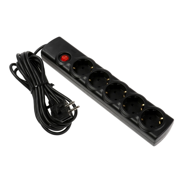 Сетевой фильтр Luazon Lighting, 4 розетки, 5 м, 2200 Вт, 3 х 0.75 мм2, 10 А, 220 В, черный