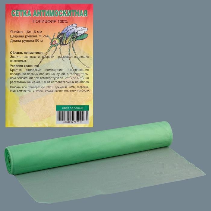 Сетка антимоскитная для окон и дверей, ширина — 75 см, цвет зелёный (в рулоне 50 м)