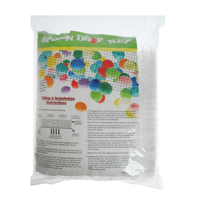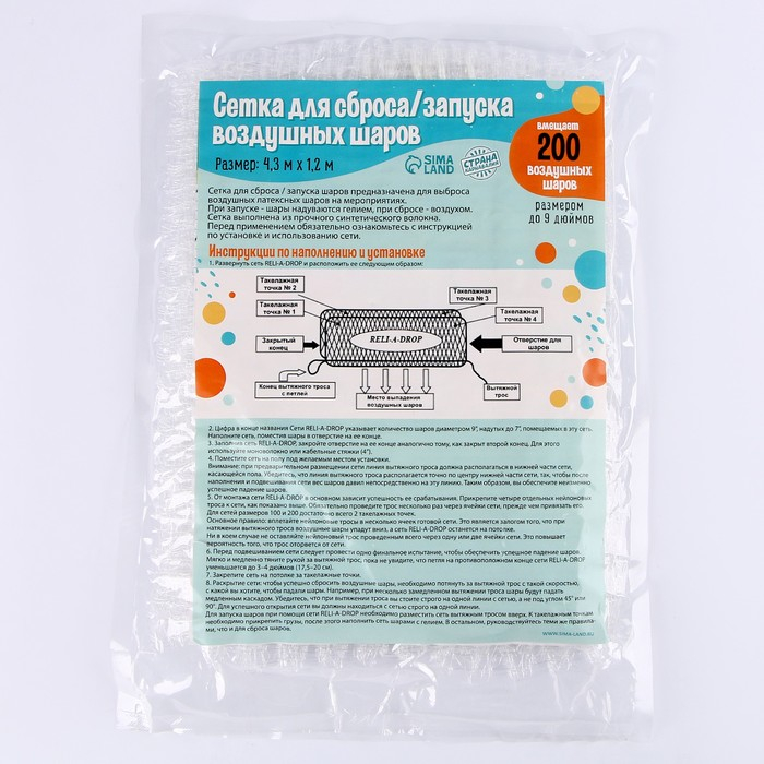 Сетка для сброса/запуска шаров вмещает 200 воздушных шаров размером до 9 дюймов.