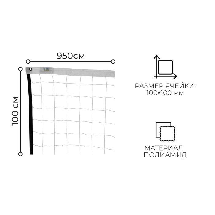 Сетка волейбольная, нить 2,5 мм, 9,5х1 м